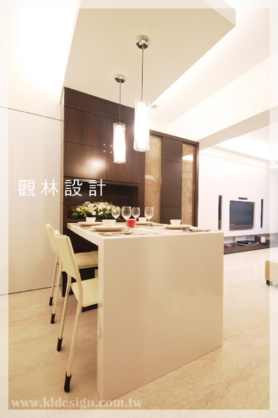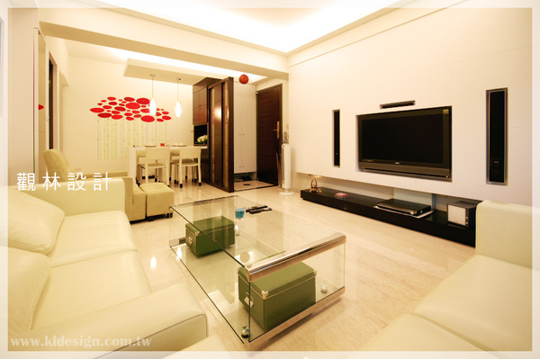 戀上我的家,我在繁忙的城市中戀愛了!沒有太過繁複的設計只有傳達給業主最直接最誠懇的設計風格,快工作慢生活似乎已經變成都市裡面的生活節奏,家是一派溫馨、休閒的地方,選擇住的似乎大過於生活的每一部份,所以當客廳音響播放著自然SPA的水晶音樂回到家就變成了一種享受,設計師將電視及音響內嵌,讓整體客廳視覺感延伸,電視主牆也是採用內嵌式設計,下方則是由木作製作的電視櫃不但節省了客廳的空間也替業主做簡單流暢的設計,米白色的沙發搭配透亮的茶几讓整體客廳氛圍輕鬆舒適,玄關部份用系統櫃與餐廳作為區隔不會影響到家人用餐的隱私權,吊燈採用紅色的燈具,象徵熱情的喜悅讓業主回到家第一個感受就是熱情的擁抱。