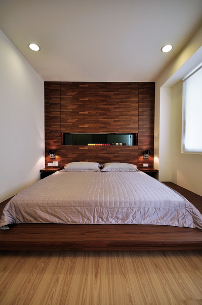 主臥室保留木質系的舒適風格造型背牆點綴空間效果