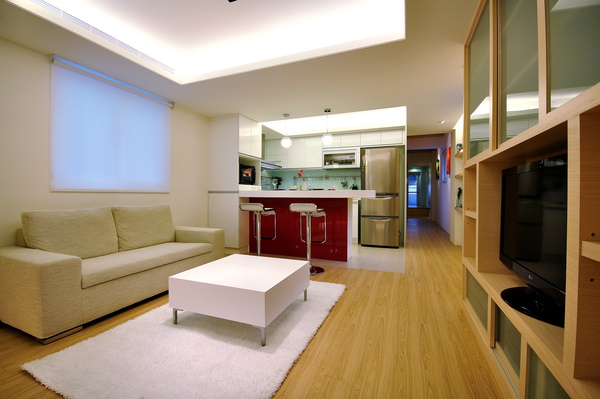 位於蘆洲三民路的屋主是一對新婚不久的夫妻,男主人目前從事科技公司工作,女主人從事公務人員,購屋不久想請設計師打造現代感的住宅風格。由於屋主剛新婚不久注重兩人休閒空間,因此在與設計師詳談後想要設計開放式的廚房及吧檯擴大空間感。