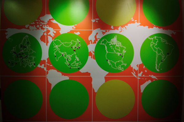 屋主最愛的地圖輸出,設計師替屋主規劃屋主所去的國家用磁鐵標誌紀錄