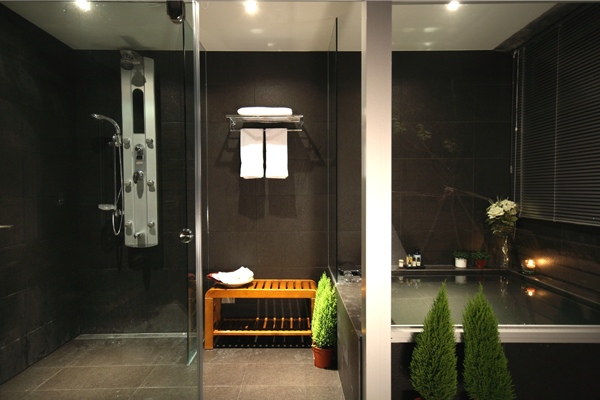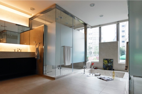 浴室空間打通整體空間就是為了表現主浴的開闊大器,整體空間的設定成六星級飯店度假的時尚質感。