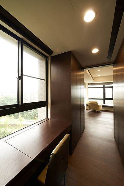 ▲閱讀空間│臥室前方設計師規劃了一處小書房,方便屋主寫作,看著風景寫下心情日記,簡單生活從這裡開始,後方為女主的更衣室。