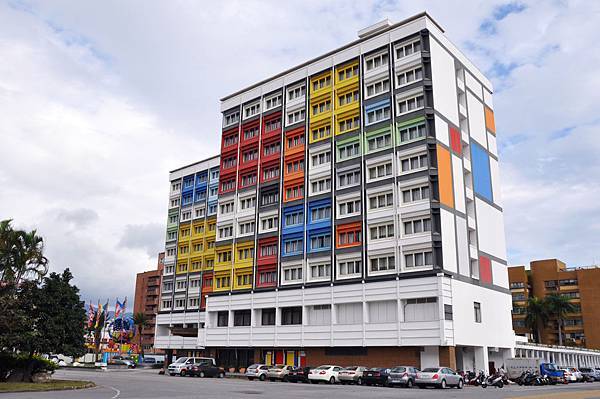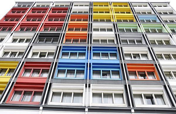 使用多種色塊,也讓人聯想到了空間設計的運用,不見得一定要單一色系的單調,多點色彩及跳躍性的活潑感或許是種挑戰。(這個角度看這座建築似乎又多了幾分無法言喻的巧妙,像極了小時候玩三角板的拼貼)