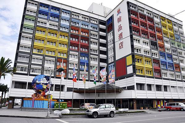 翰品花蓮酒店的建築外觀採用風格派藝術家創始者之一彼埃•蒙德里安(Piet Cornelies Mondrian)的藝術設計,外觀設計大膽使用跳色呈現,跳脫出一般建築物用色上的平淡無奇,跳色的設計讓人在遠方就可以看到這棟建築物。翰品花蓮酒店前方為中央山脈,後方為太平洋,剛好位於中段的地帶,因此不像台北這麼濕冷。