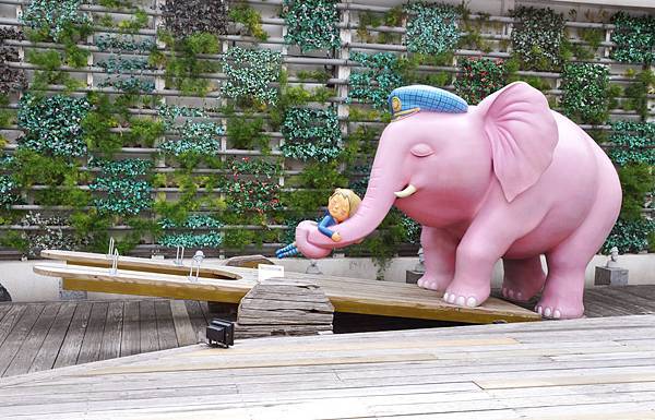 幾米的裝飾藝術陳設在中庭處,一旁的植生牆傳達一種溫馨舒適的感覺。
