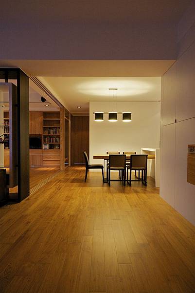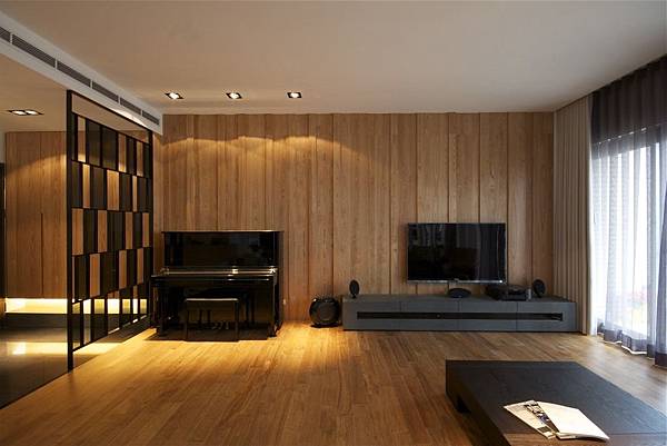 柚木地板的溫馨色系、親合的觸感是屋主的最愛。