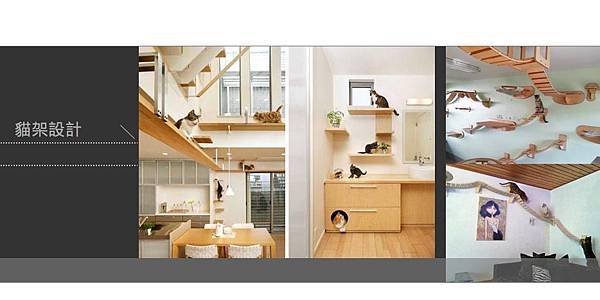 主要建材:鐵件、茶鏡、人造石、地毯(貓道用)、柳安木、木地板、噴砂玻璃、系統櫃