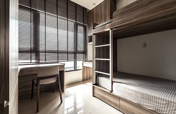 採光通透的絕佳優勢,讓空間裡大量原木質感的家具,烘托出鮮明的自然紋理,染上一抹中式禪風;溫潤色系再伴隨東方風情的藝術品襯托,調和雅致的人文風采。自然無華的質感從公領域開始遊走,一路蔓延到私領域,透過深色系木紋造型的系統櫃,完成床、書架與衣櫃擺設,美學與機能一應俱全。