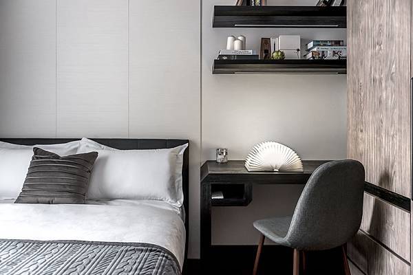 觀林設計以此巧妙區隔空間的場域,保持客、餐廳的串聯,也各自擁有獨立性,同時替兩位租客擴增一處彈性的空間,以便生活上的區隔,共享空間同時兼具開放性與隱私性。對於居住者來說,有品質的生活在於能夠區分公與私的場域分界,讓生活保留自己的獨特性,也是設計團隊刻意連結到現代租屋族的共享生活哲學。